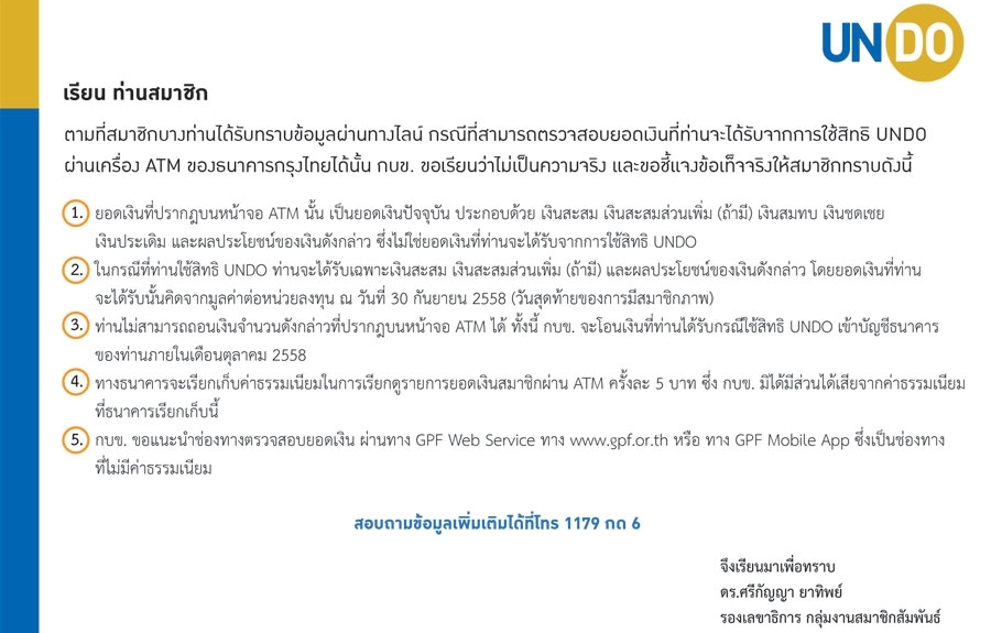 กระตุ้นให้สมาชิกคิดให้รอบคอบก่อนตัดสินใจ undo. ชุดที่ 1: กรณีไม่ undo.
